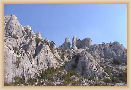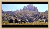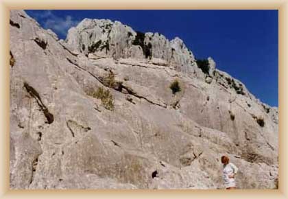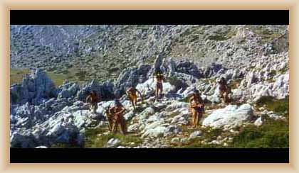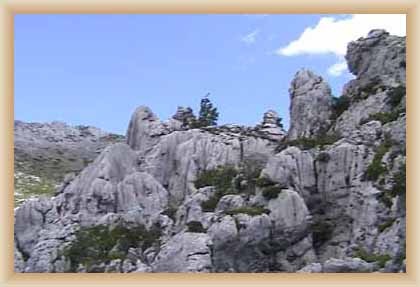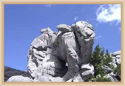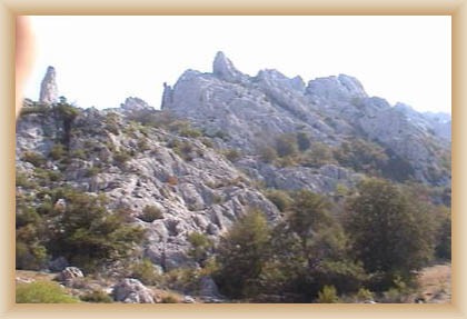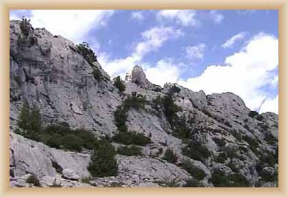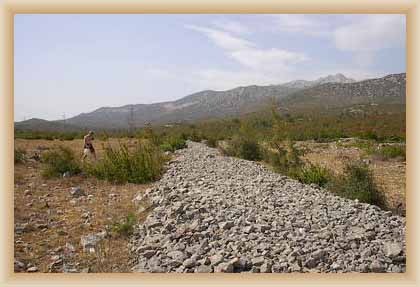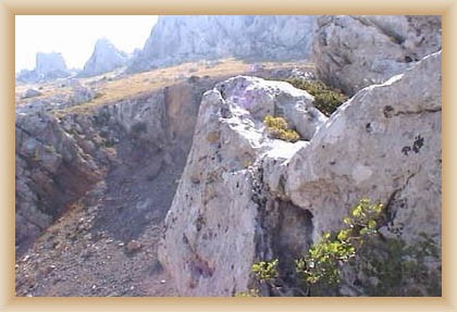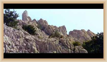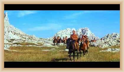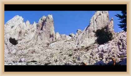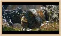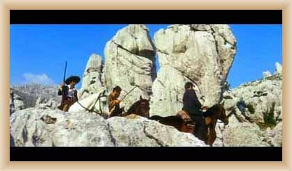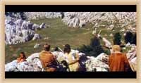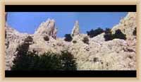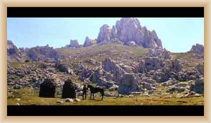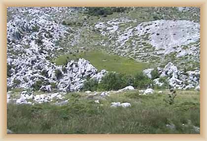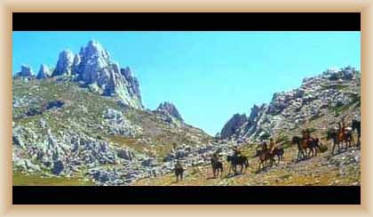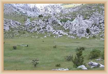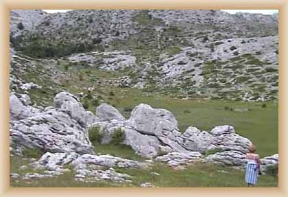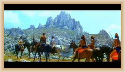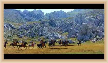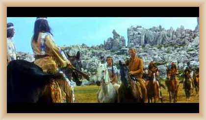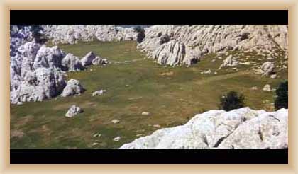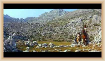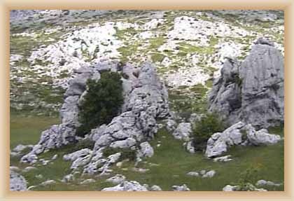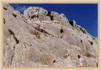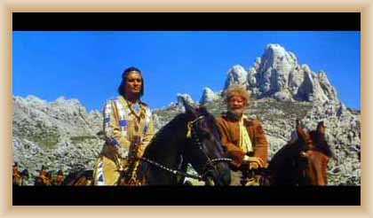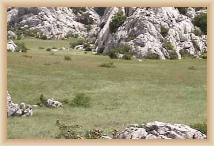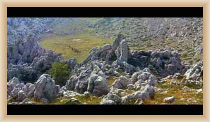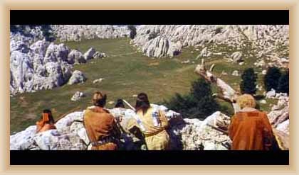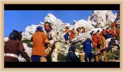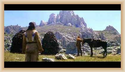 Ve "skalnatém lese" byly natočeny jezdecké a bojové scényLouka s hrobyLouka s hrobyZbytky hrobůSkalnatý lesLouka s hroby s nad ní ležícím kamenolomemLouka s hroby zezhoraVelká zelená loukaNa této skále stál Old SurehandNa cestě k zelené louceNěkde na tomto svahu vznikla scéna umírání Zde klesnul Santer mrtevTábor dělníků stavějících traťJediná ještě existující kulisa z filmů Karla MayeStanoviště stanů v traťovém tábořeNa této louce zemřel Klekih-Petra